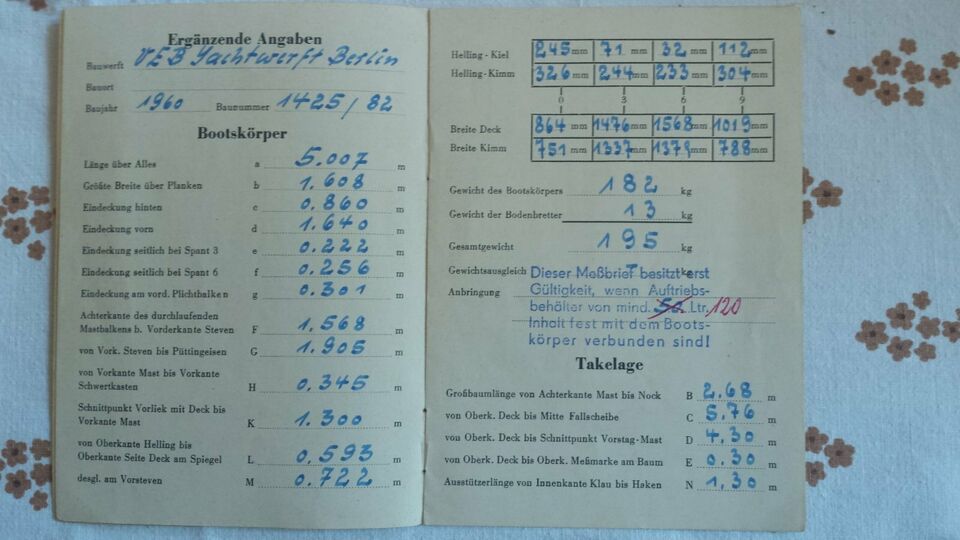 Der Pirat wurde 1960 in der Yachtwerft Berlin gebaut. Gefunden habe ich es in der Nähe von Neubrandenburg. Der Zustand ist im Großen und Ganzen in Ordnung. Trotzdem sind im Bereich des Vorsteven in Höhe der Wasserlinie Erneuerungen notwendig. Wahrscheinlich tauchen bei der Renovierung noch weitere Dinge auf, die zu bearbeiten sind.  Diese Arbeiten werde ich in den nächsten Wochen in angriff nehmen. Handwerkliche Tätigkeiten sind für mich eigentlich kein Problem, aber der Holzbootsbau erfordert doch sicher spezielle Kenntnisse. Dazu kommt, dass der Rumpf aus Mahagoni besteht und daher zusätzliche Kenntnisse notwendig sind.  Ich bitte daher  um  Eure Unterstützung, wenn ich eine Frage habe.