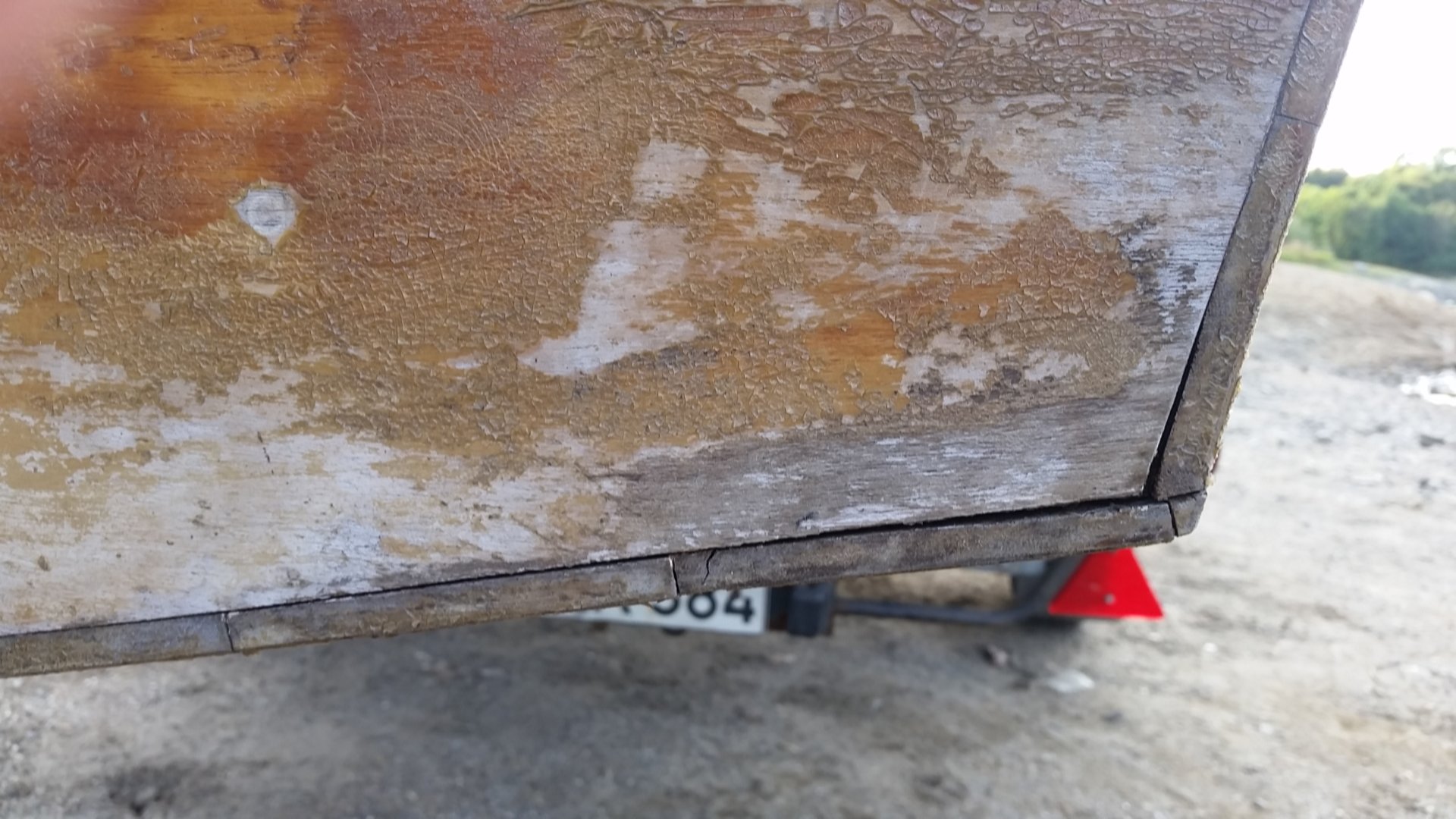 Zusätzlich habe ich einen Deckschaden Steuerbord entdeckt (Foto), der vor der Trailertour zum Jasmunder Bodden noch nicht da war - wie kann denn sowas passieren, bzw. wie ist die Unterkonstruktion in dem Bereich, und was hat da nachgegeben?