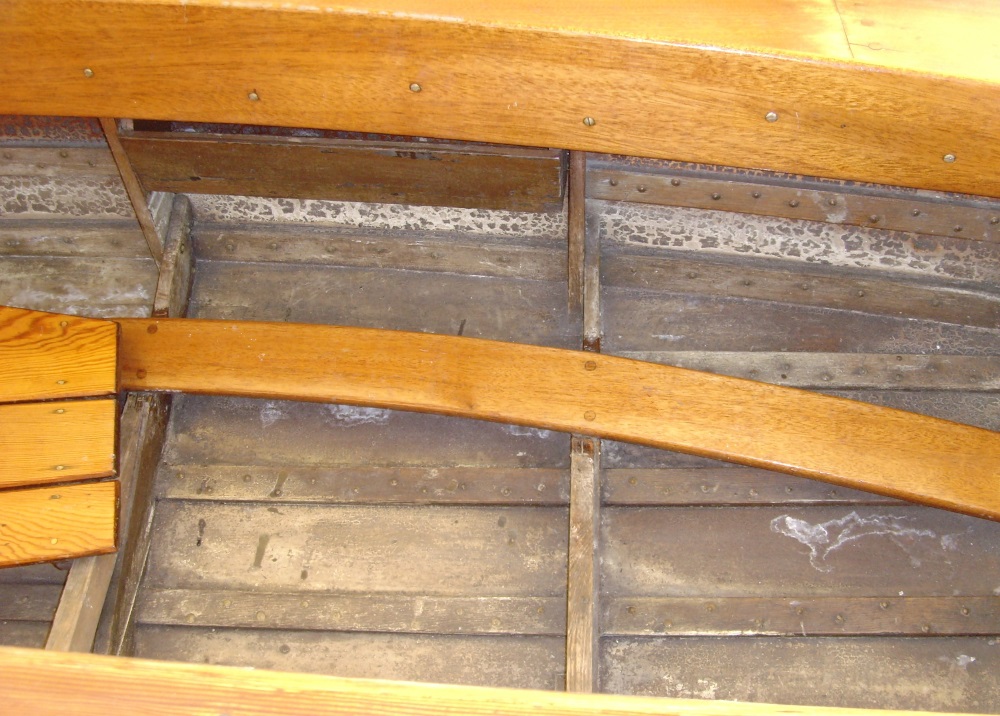 Du sprichts wahrscheinlich von den gebogenen Leisten "neben den Bodenbrettern", das sind die Remmleisten. Die Ruderblattaufhängung bekommst du gut bei Dauelsberg in Bronze.