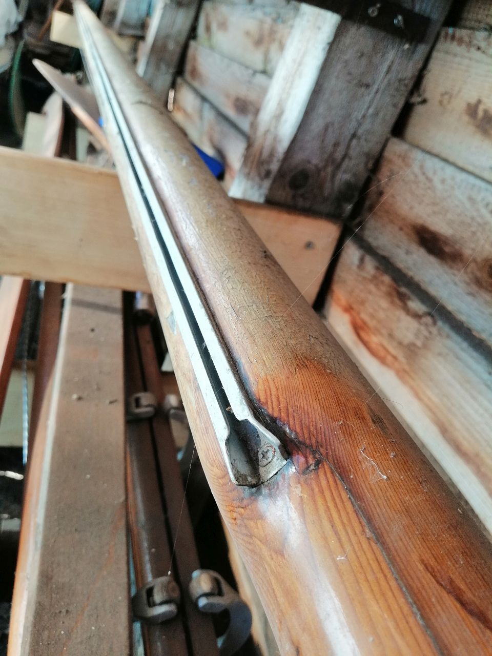Bei unserer Piratjolle ist die Führung des Hauptsegels am Mast teilweise ausgebrochen. Bei stärkerem Wind rutscht das Segel aus dem Mast. Hat jemand einen Tipp ob und wie man den Mast überarbeiten kann?