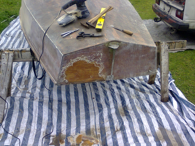 In einer Nacht- und Nebelaktion holte ich ihn als aufgegebenes Projekt mit auf-/angeschliffenem Deck an sein Zwischenlager, wo er dann länger bleb, als erst gedacht.
