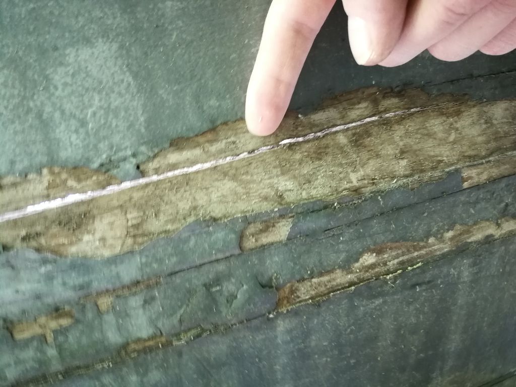 Die Kielplanken sind entlang des kiels gerissen und müssen wohl komplett ersetzt werden.