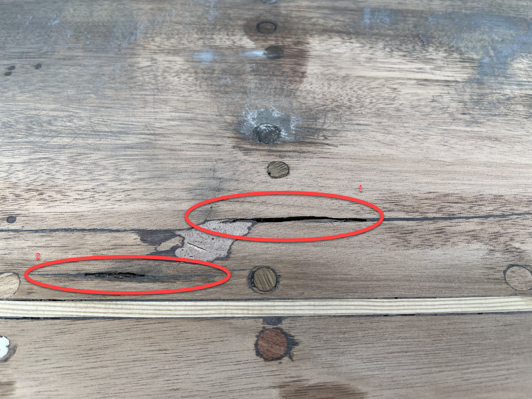 Bei dem Riss 1 kann man durchschauen und als ich etwas Epoxy auf den Riss 2 gegeben habe, ist dieses komplett im Riss verschwunden, ohne diesen zu verschließen.