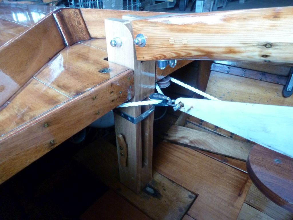 Fallen und Wanten sind leider noch nicht fertig. Habe in der letzten Zeit das Boot erstmal für die Saison fertig gemacht. Kommt so zum 1.Mai wieder mit Alumast ins Wasser. Im Anhang sind jetzt ein paar Bilder wie der Klappmast jetzt montiert ist. Ich habe eigentlich eine Großbaumstütze am Traveller damit die Pinne frei ist. Ob das mit dem schweren Holzmast auf Grund des ungünstigen Hebels geht weiß ich nicht. Hier muss ich wohl eher eine Stütze auf das Heck stellen. Wie ein X?
