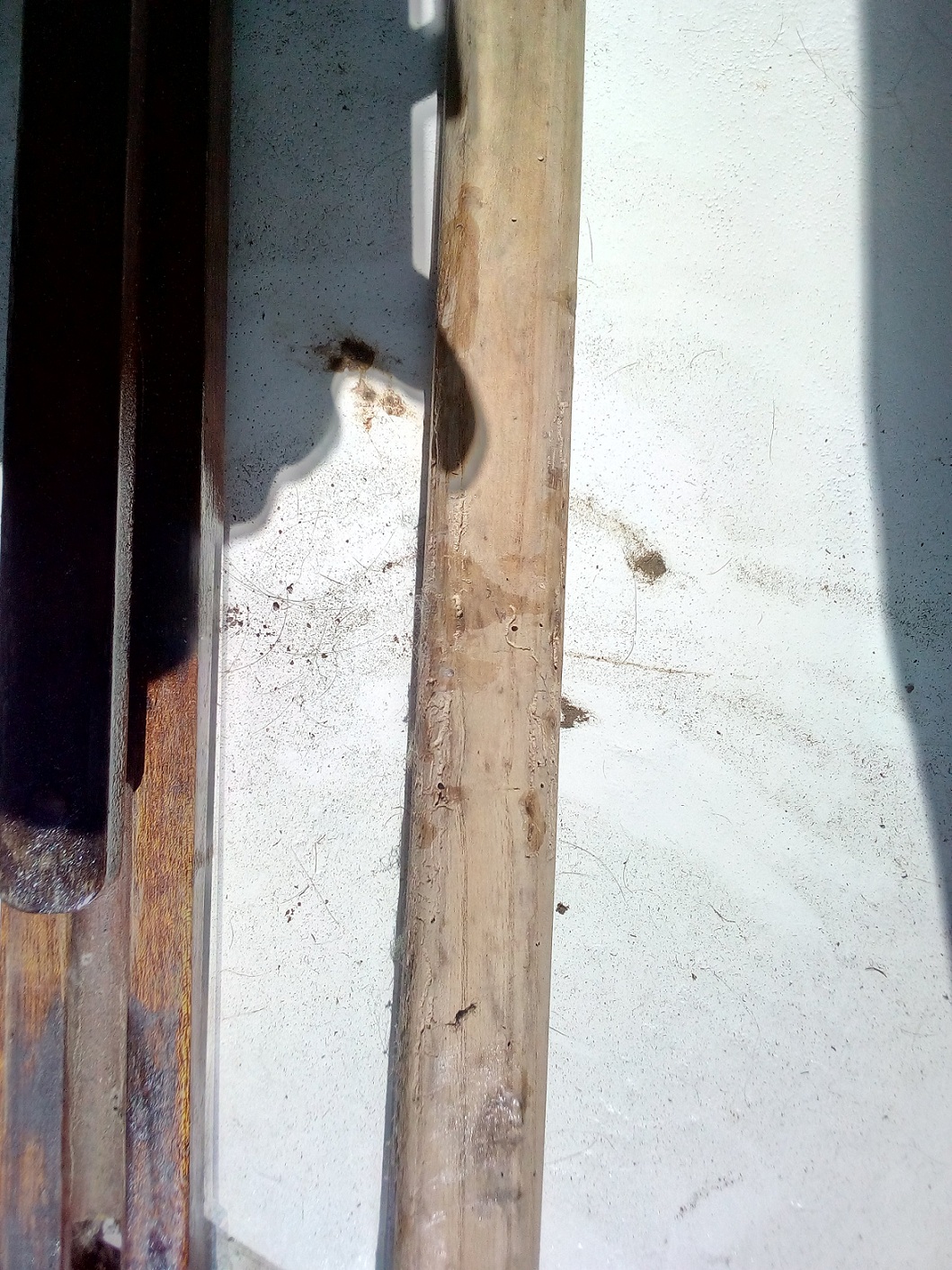 Ist von einem 5 m Dinghi und übrig. Wohl Esche. Hat in der Mitte ein paar Wurmlöcher, aber der ist raus und sie ist stabil. Habe sie gerade auf Auflagern außen gedrückt; das geht. Ehe Du was ganz neues fabrizierst.