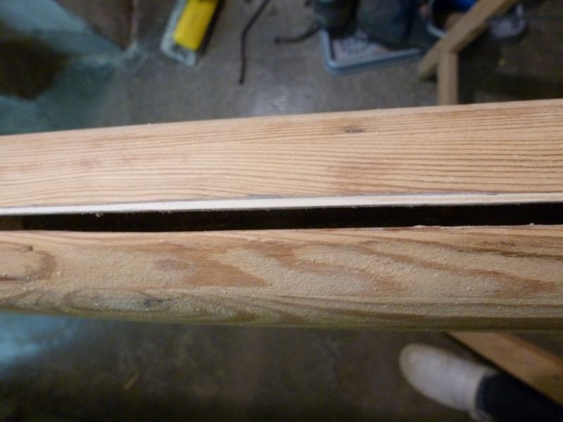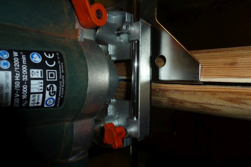 Hier noch ein paar Bilder von der Reparatur der Mastkeep. Die Keep war teilweise 5-7mm breit. Vorallem im unteren Bereich vom Mast und im oberen Teil war der größte Verschleiß. Komischerweise waren die Abnutzungen einseitig, so hatte ich dann aber für den Fräser ein Bezugskante. Ich habe dann in die schlechtere Seite Leisten mit Epox eingeklebt, wie in Bild1 nachgestellt. Von einer Oberfräse wurde dann die Kunststoffteile vom Parallelanschlag abgeschraubt (Bild2) und dann der Schlitz auf 4mm gefräst (Bild 3 und 4).